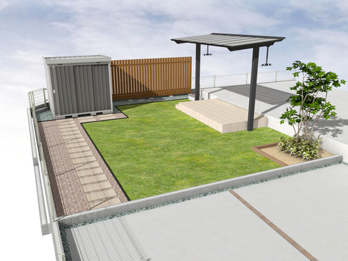 今回は、木製フェンスやテラス屋根の設置は行いませんが、今後の展開としてご提案させていただきました。