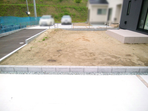また、庭には物置設置・コンクリート平板敷き・天然芝張り・花壇枠の設置をしていきます。