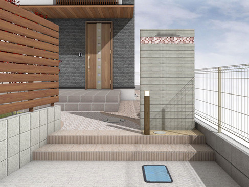 当初の契約デザインから急遽駐車場を広げて、アプローチのデザインも若干変更をし、先日プランが確定しました。