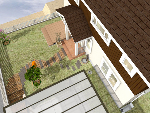 アプローチや階段はレンガとコンクリート枕木をミックスして作ります。